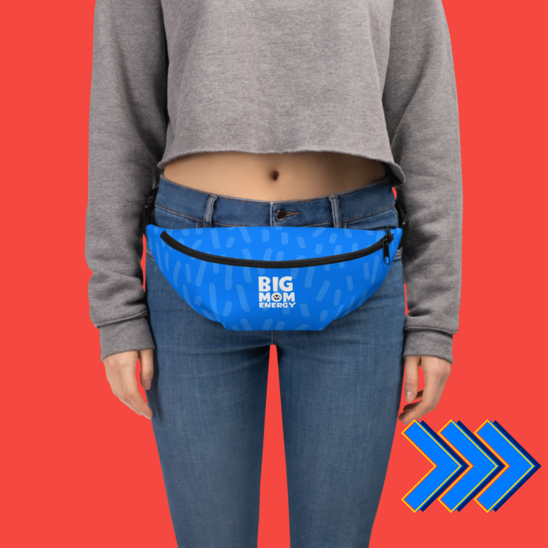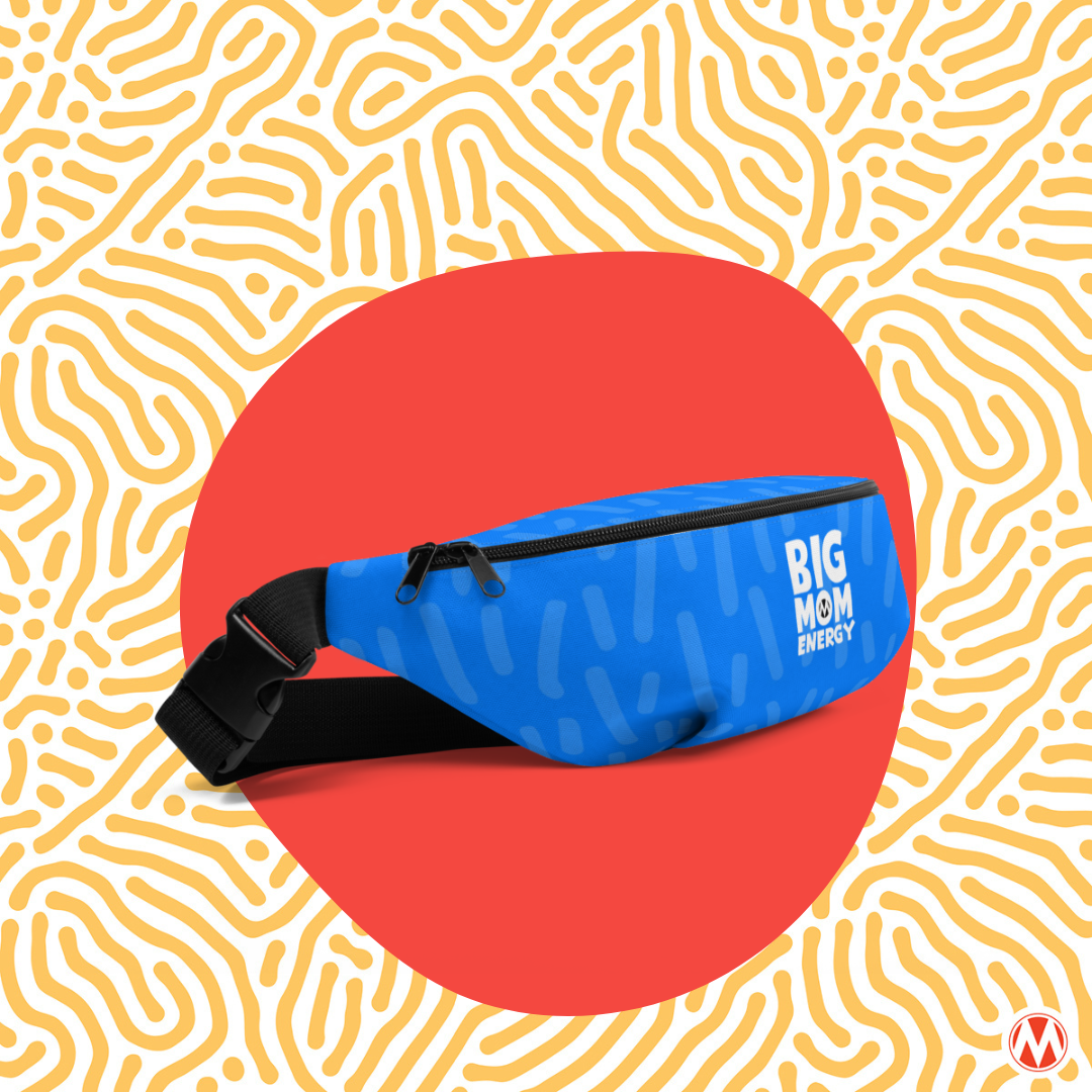Our Big Mom Energy fanny pack in blue is the ultimate Mom accessory this election year. This waist bag has everything—the right size, a small inside pocket, and adjustable straps—to hold all of your advocacy essentials from pens and lip balm to water and snacks (to keep up that Big Energy!). Don't forget your scrunchie to complete this throwback look!